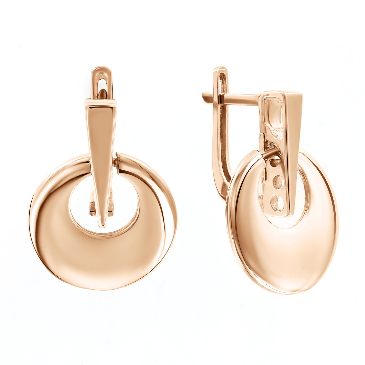 Elegante Ohrringe aus 585er Rotgold mit sanft gerundeten Formen und einem stilvollen, beweglichen Element. Die glatt polierte Oberfläche reflektiert das Licht und verleiht dem Schmuckstück einen edlen Glanz. Ein vielseitiges Accessoire für sowohl Alltag als auch besondere Anlässe.