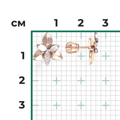 Crafted from 14K red and white gold 585, these elegant stud earrings feature a floral design adorned with genuine diamonds. The soft interplay of gold tones and natural sparkle creates a sophisticated yet delicate statement piece.