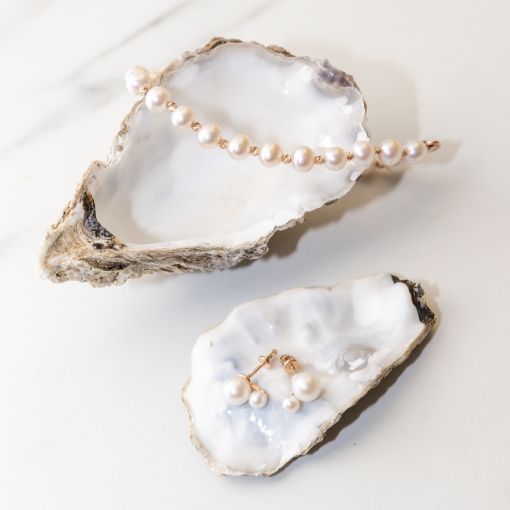 Two pearls of different sizes create a delicate, feminine look with timeless appeal.