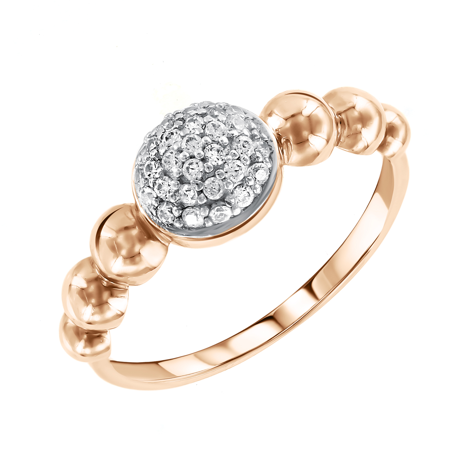 Elegant women's ring made of 585 red gold, featuring a stylish bead design and a sparkling cubic zirconia pavé centerpiece.