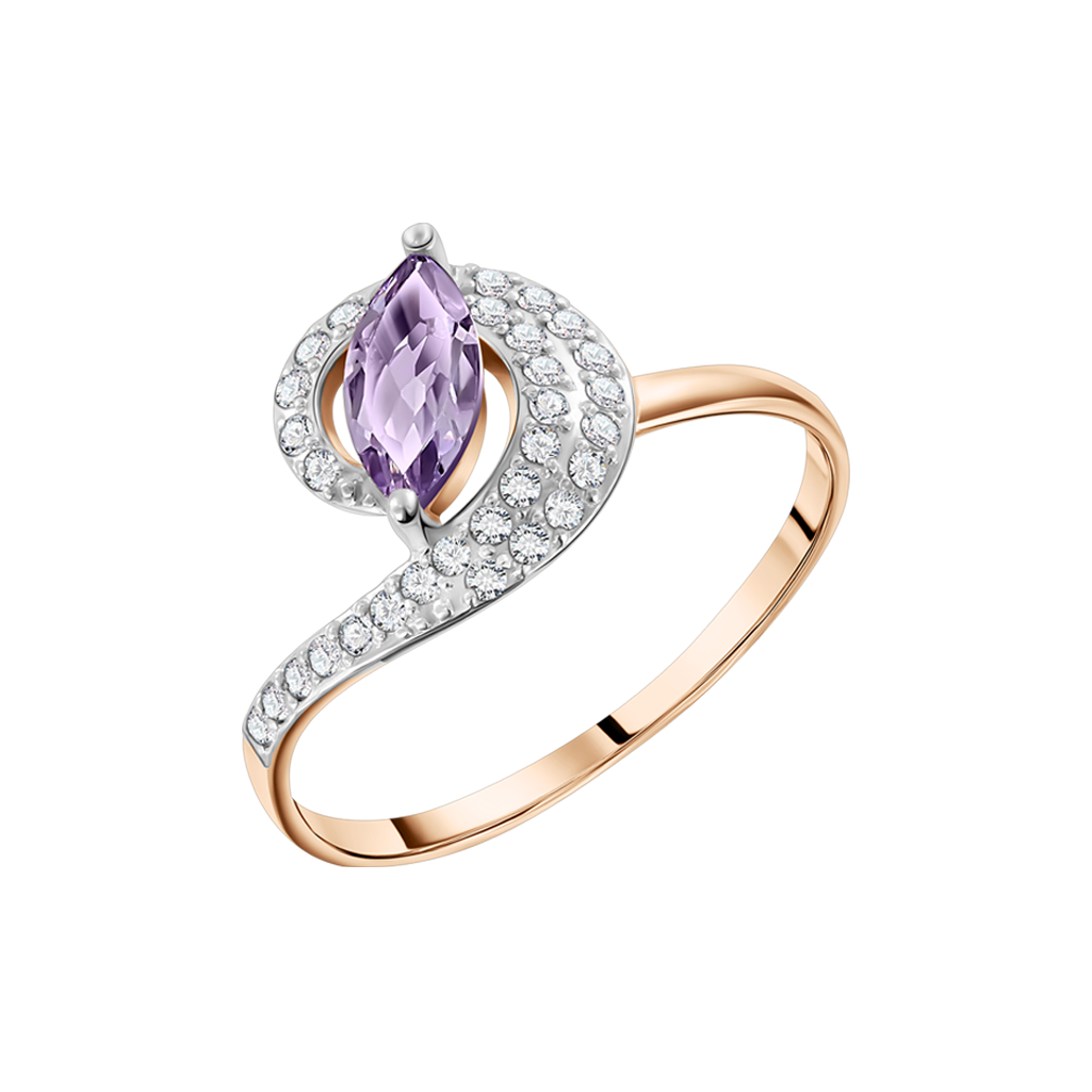 Amazing women's ring, red gold 585, with amethyst and zirconia