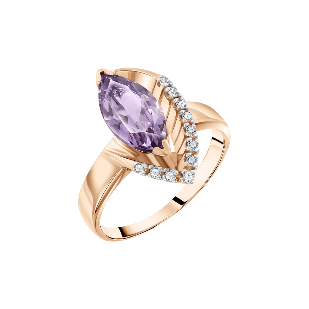 Lovely women's ring, red gold 585, with amethyst, zirconia