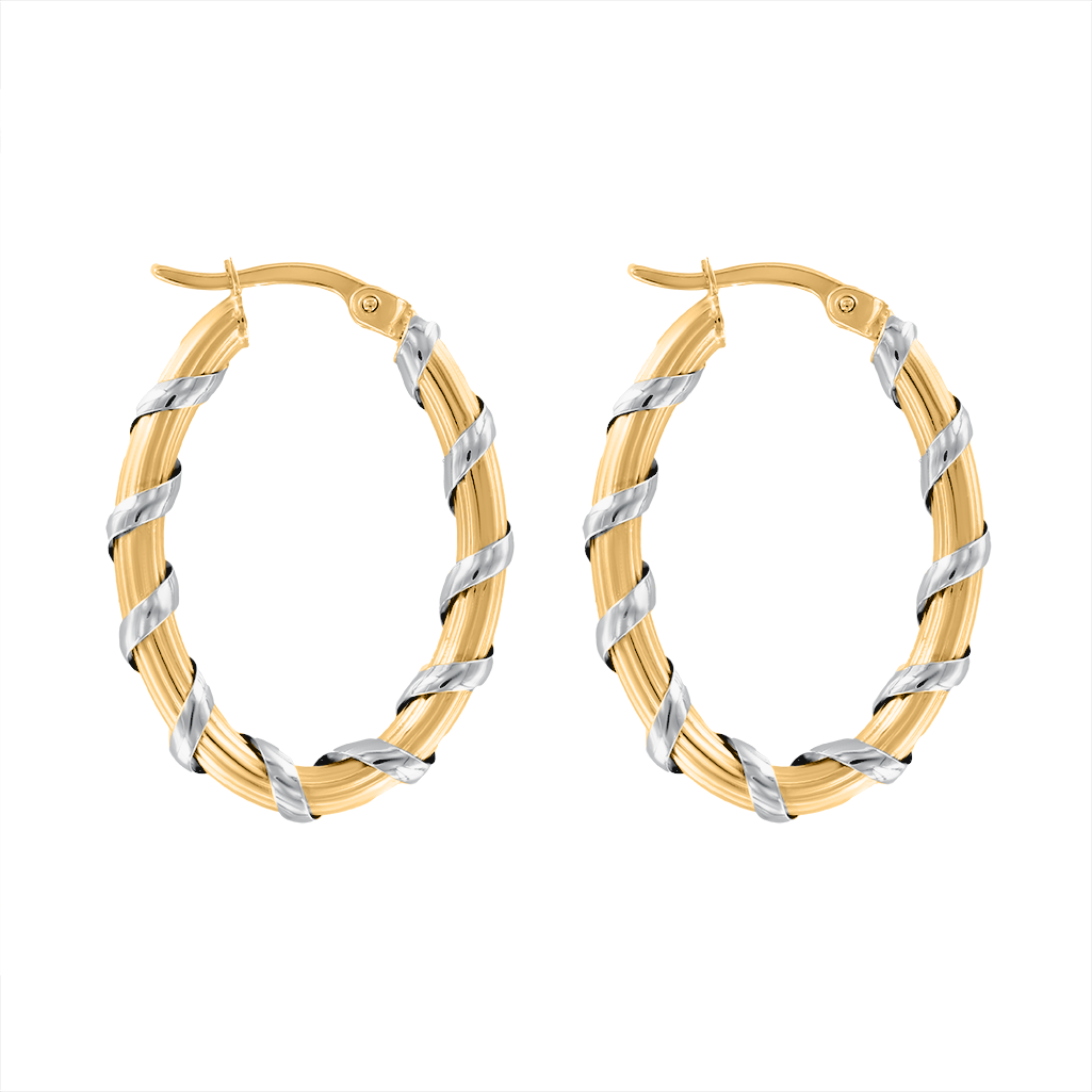 Elegant hoop earrings crafted from 585 yellow gold with a distinctive two-tone accent.