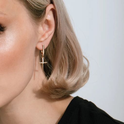 These earrings captivate with a clean cross shape, sparkling zirconia, and elegant shine.