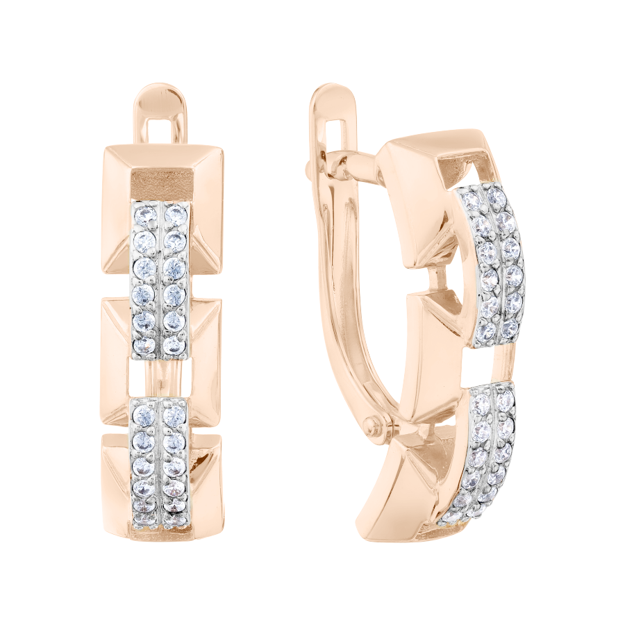 Charming earrings, Russian red gold 585, with 48 cubic zirconia, height about 20 mm