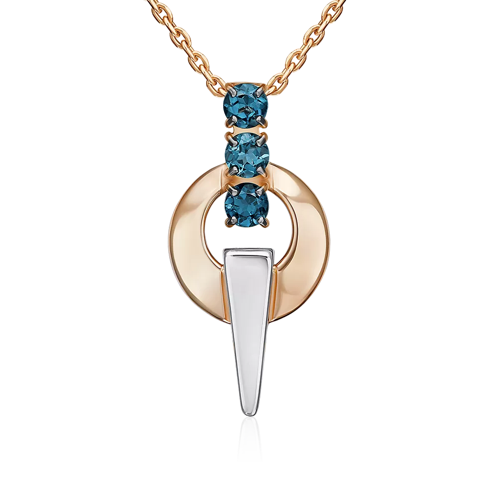 Elegant pendant crafted from 585 Russian red and white gold, adorned with three sparkling blue topazes.