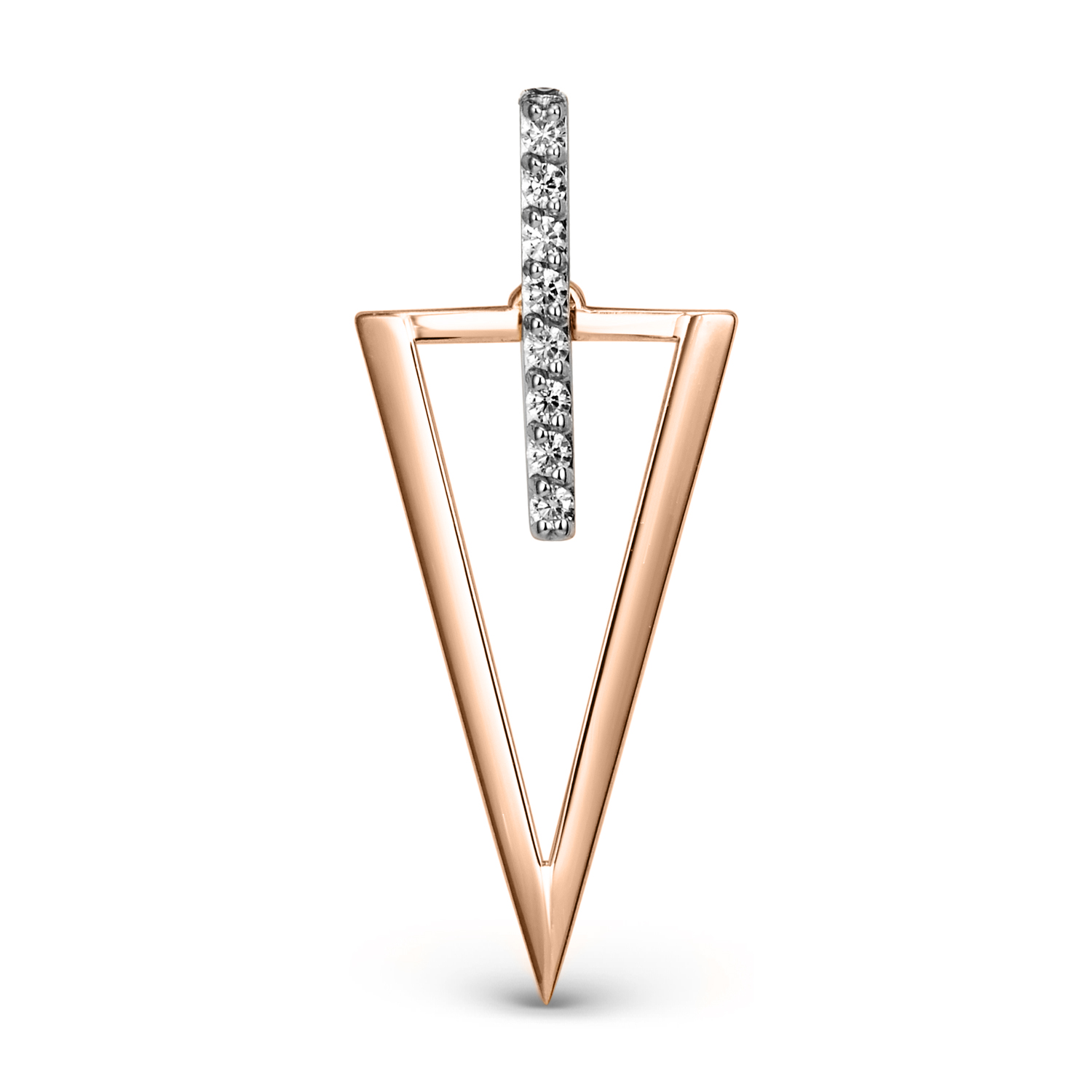 Modern pendant crafted from 585 russian red gold in a sleek elongated triangle design.