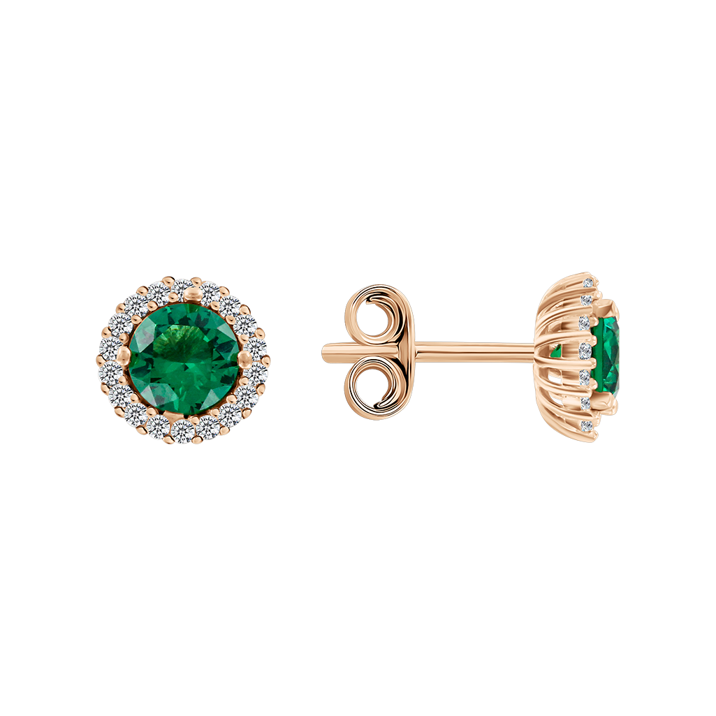 A vivid green center stone surrounded by a sparkling halo of clear zirconia creates a stunning play of color and brilliance. With a diameter of approx. 8 mm, these earrings make a refined yet eye-catching statement.