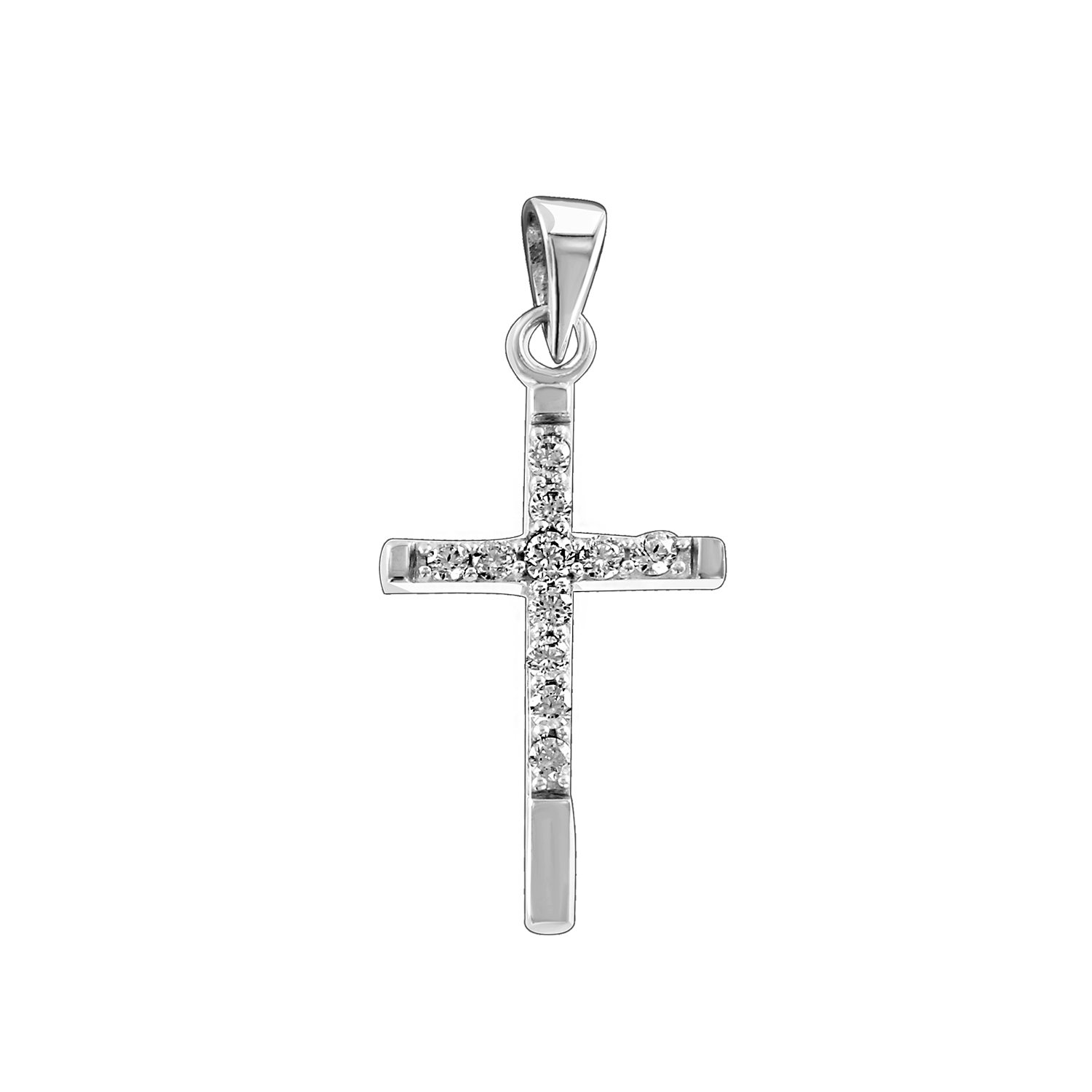 Beautiful cross pendant, white gold 585, with brilliant-cut diamonds 11 pieces 0.131 ct. HSI, height approx. 23 mm