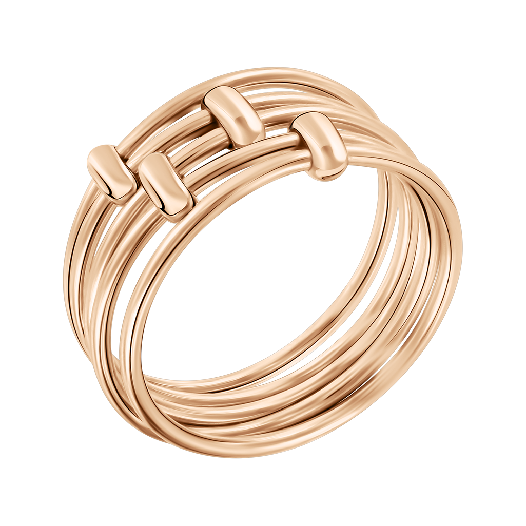 A stylish women's ring crafted from 585 russian red gold, featuring several fine, parallel bands.