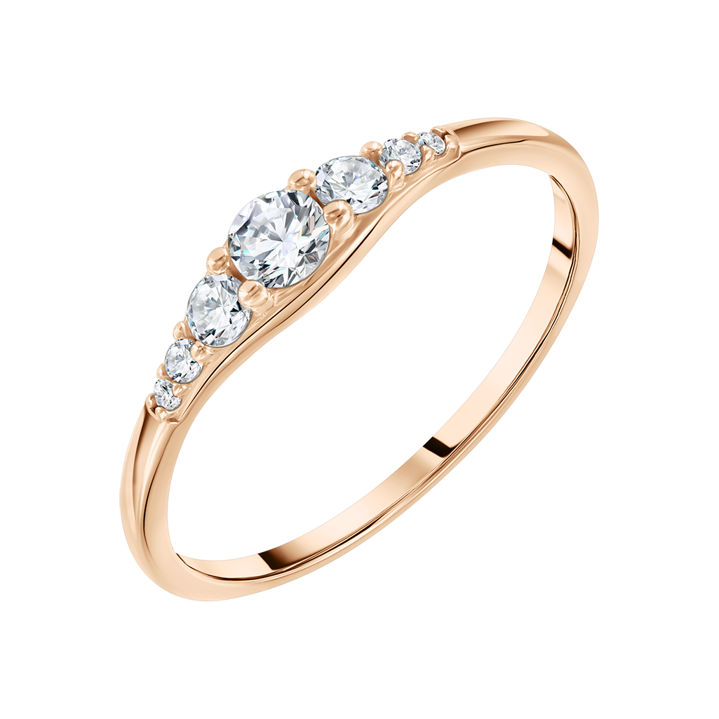 The central sparkling zirconia is accentuated by gradually smaller stones on each side, creating a harmonious and refined silhouette.