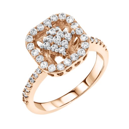 An elegant 585 red gold ring featuring an intricate openwork top adorned with sparkling cubic zirconia.