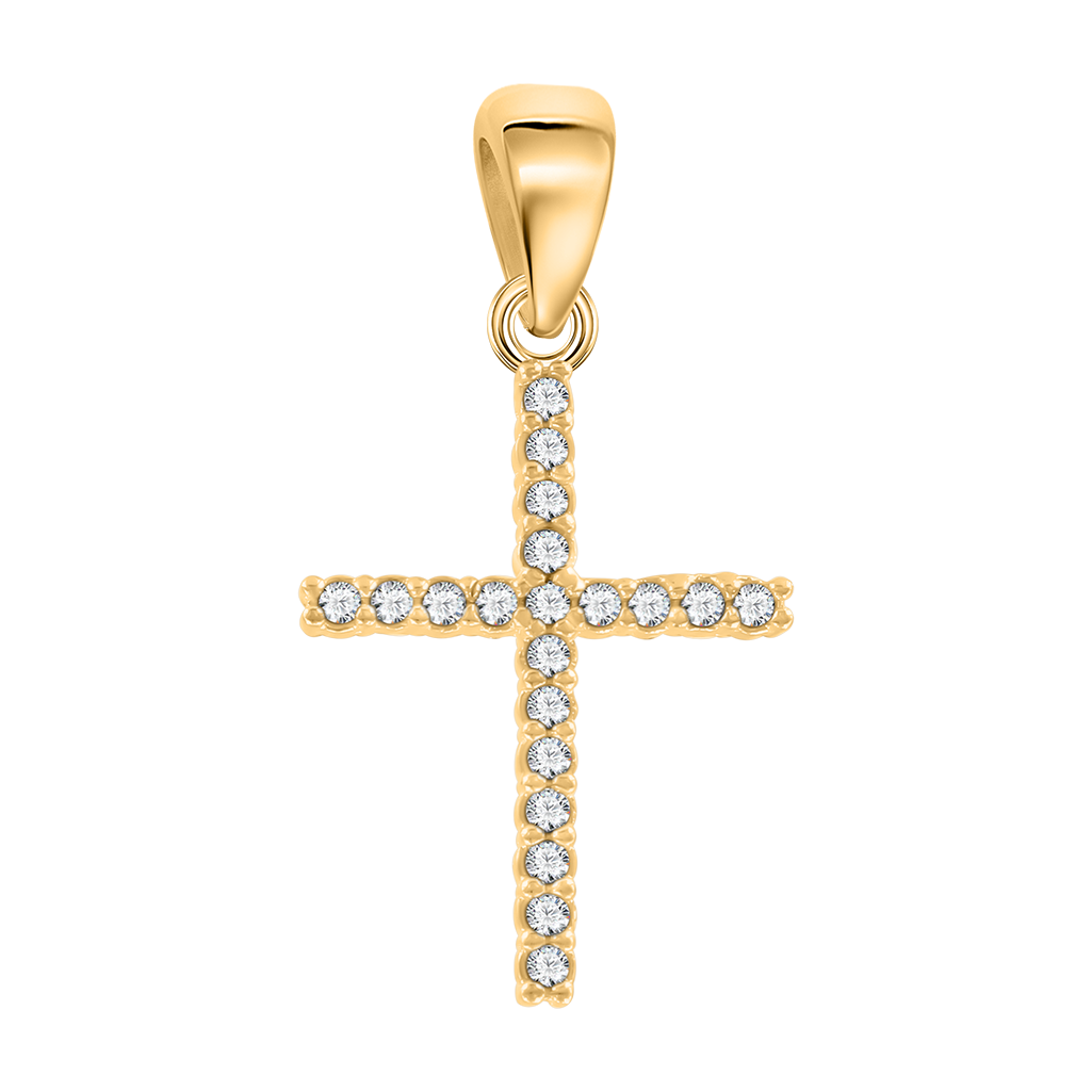 An elegant cross pendant crafted from 585 yellow gold is adorned with sparkling zirconia, adding refined brilliance to the design. The classic style combines spiritual meaning with timeless elegance, making the pendant a meaningful symbol of faith and protection.