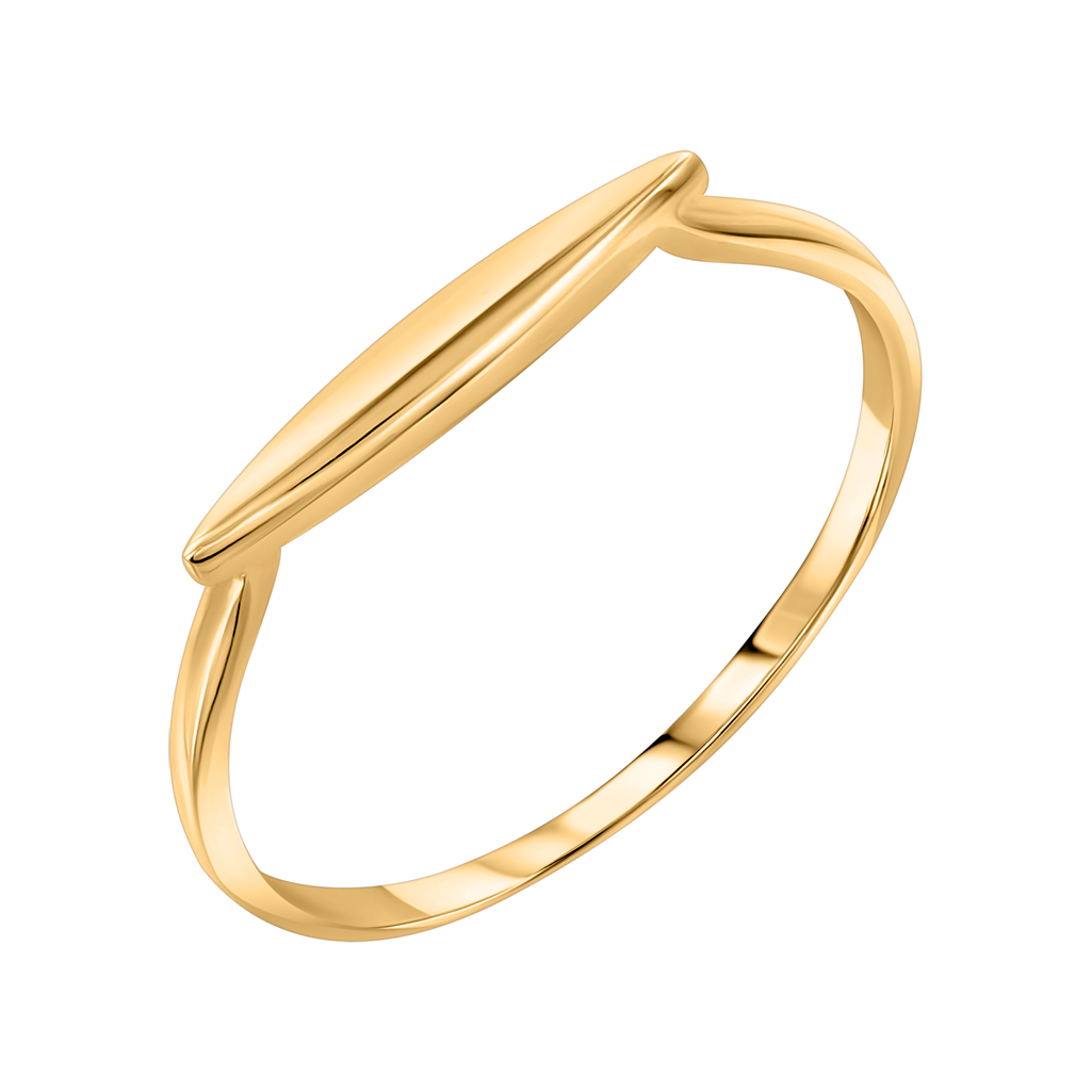 An elegant ring crafted from 585 yellow gold features a refined minimalist design with a softly elongated decorative element.