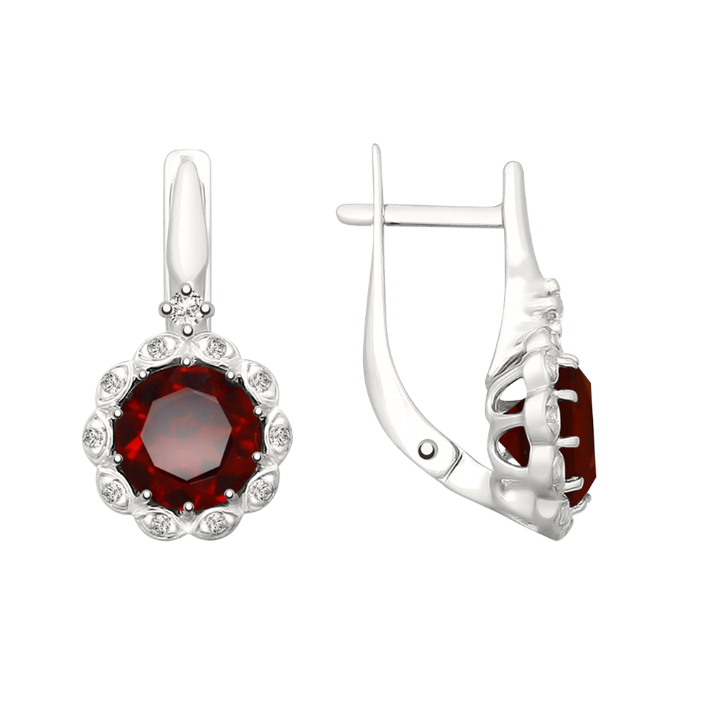 Earrings with garnet and zirconia