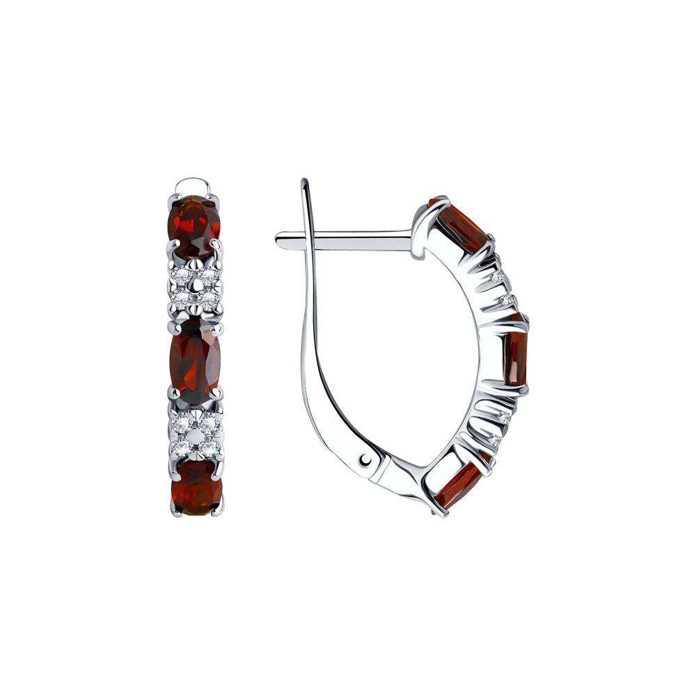 Attractive earrings, silver 925, with garnets - size approx. 5x3 mm, and zirconia, height approx. 19 mm
