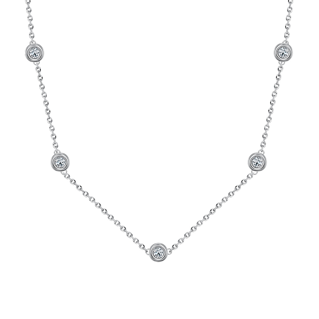 Elegant collier crafted from 925 sterling silver, adorned with multiple sparkling zirconia elements placed along the chain.