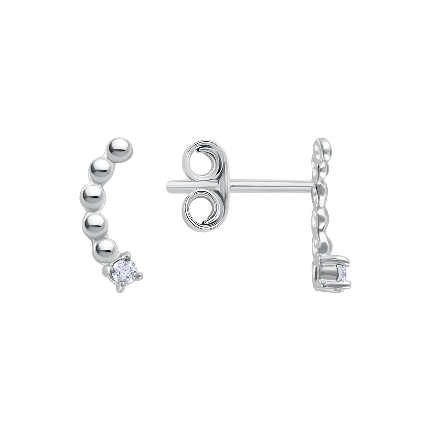 Delicate bead-like elements form a graceful curved line, ending with a sparkling cubic zirconia that adds a touch of brilliance.