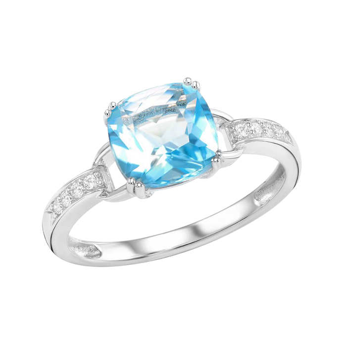 Bezaubernder Damenring, Silber 925, mit 1 hellblauem und 8 farblosen Zirkonia
