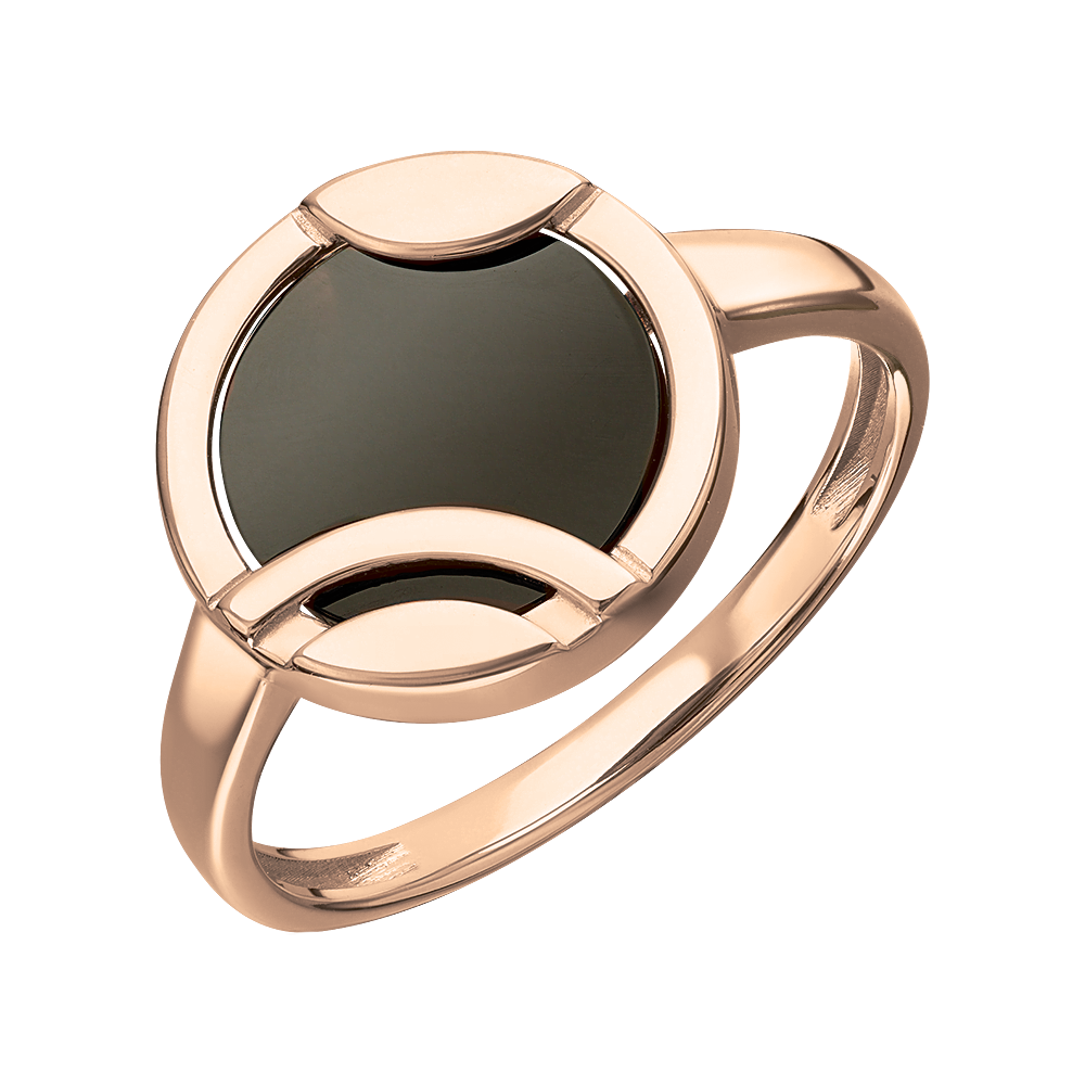 Эффектное женское кольцо-печатка из русского красного золота 585 пробы — выбор для тех, кто ценит элегантность, силу и индивидуальность. Центральный декоративный элемент диаметром ≈ 13 мм выполнен из гладкого чёрного оникса — природного минерала с глубокой символикой.