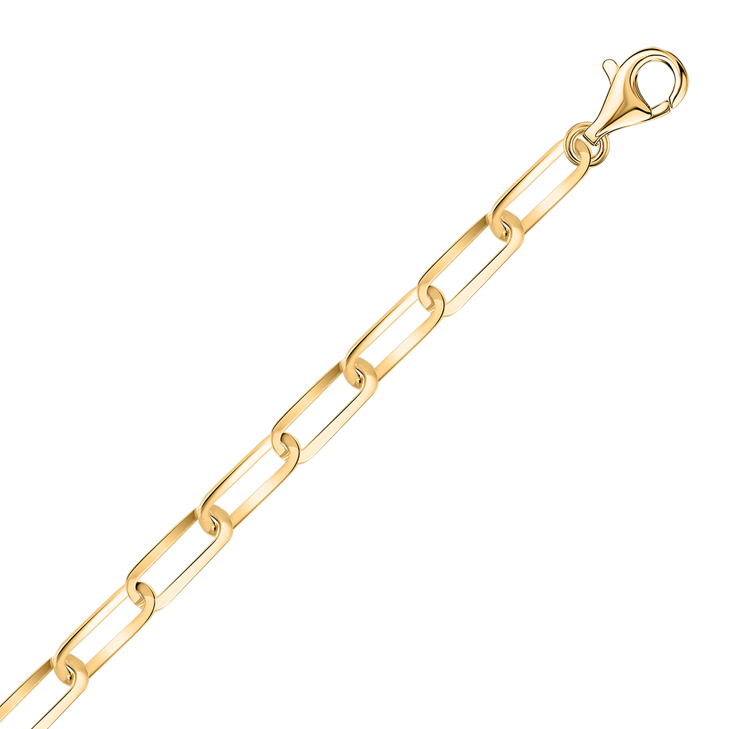 Элегантный браслет из жёлтого золота 585 пробы выполнен в современном дизайне с вытянутыми звеньями.