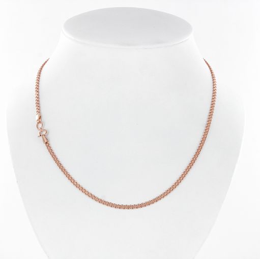 Привлекательная цепь из красного золота 585 пробы. Такой вид плетения является одним из самых прочных. В основном такие цепи носят самостоятельно без кулонов. Ювелирные изделия из красного золота долгое время сохраняют красивый мерцающий блеск, устойчивы к повреждениям. Состав этого драгоценного металла обладает удивительной эластичностью, которая позволяет придавать изделию очаровательные формы.