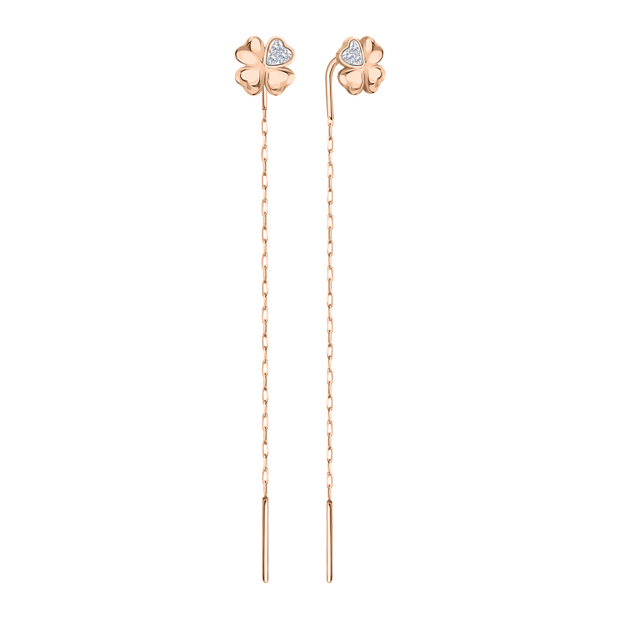 Изящные серьги-протяжки с миниатюрным клевером и сияющими фианитами.