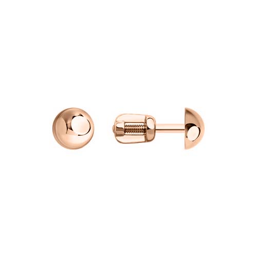 Классические шаровидные серьги-пуссеты из русского красного золота 585 пробы, диаметр ≈ 6 мм. Лаконичные сережки с винтовой застежкой, которая очень удобна в эксплуатации и на 100% надежна, ведь чтобы ее снять, надо открутить. Застежка накручивается на резьбу самого гвоздика и дает возможность регулировать силу зажима мочки уха. Визуально застежка винтового типа смотрится основательно и добротно. Винтовые сережки не заставляют свою владелицу беспокоиться о том, на месте ли ее украшения. Замочек этого вида великолепно держит серьги и не позволяет им расстегнуться даже при активной физической нагрузке своей обладательницы. Можно не бояться, что крепление винтовых сережек ослабнет, когда вы занимаетесь в тренажерном зале, плаваете в море или в бассейне, слишком активно жестикулируете или имеете привычку часто касаться области уха. Аккуратные, лаконичные пуссеты с закругленными концами не вызовут дискомфорта при постоянном ношении.