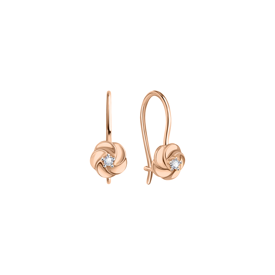 Нежные серьги с утончённым цветочным мотивом и сияющим фианитом в центре.