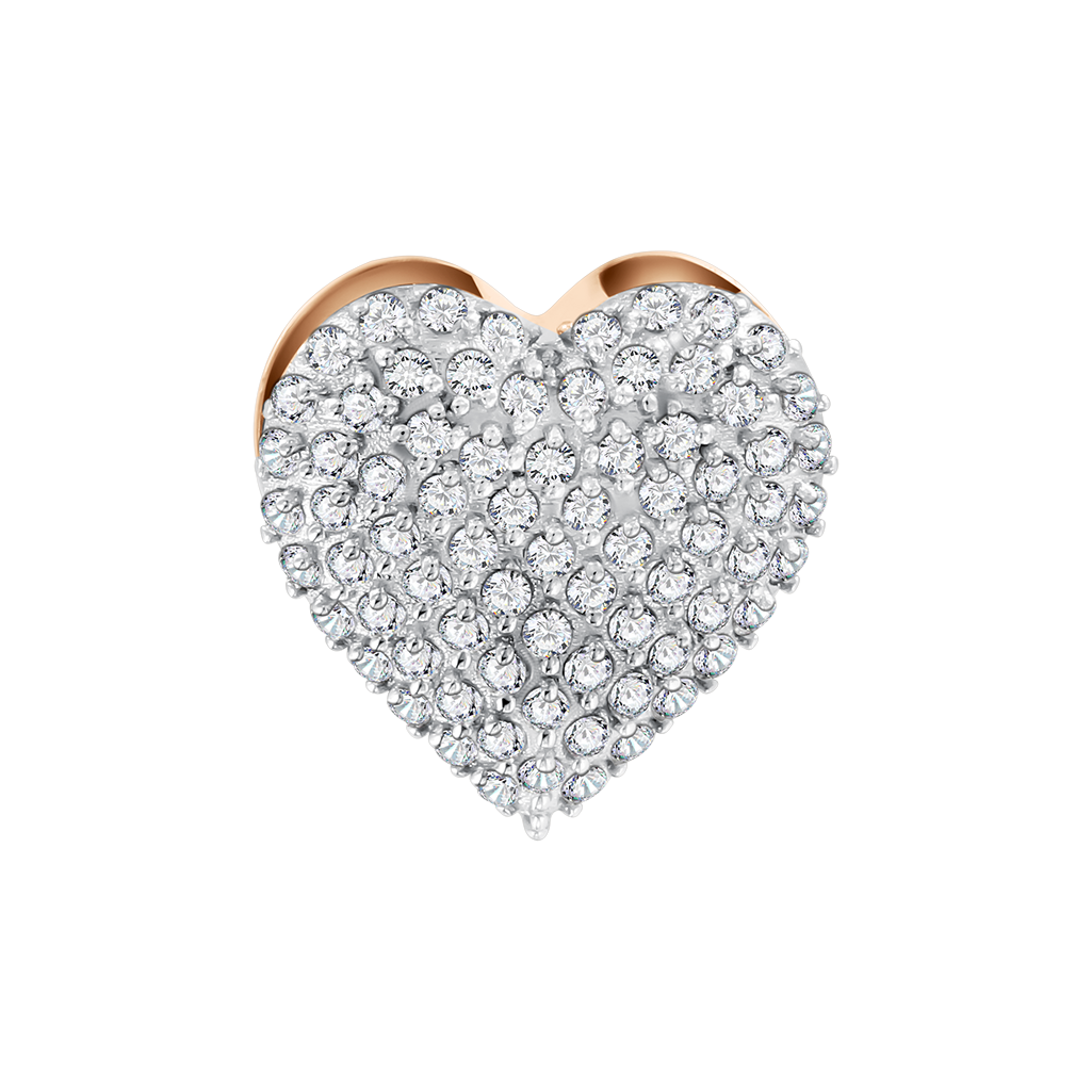 Яркая подвеска в форме сердца из красного золота 585, полностью украшенная мерцающей россыпью фианитов.