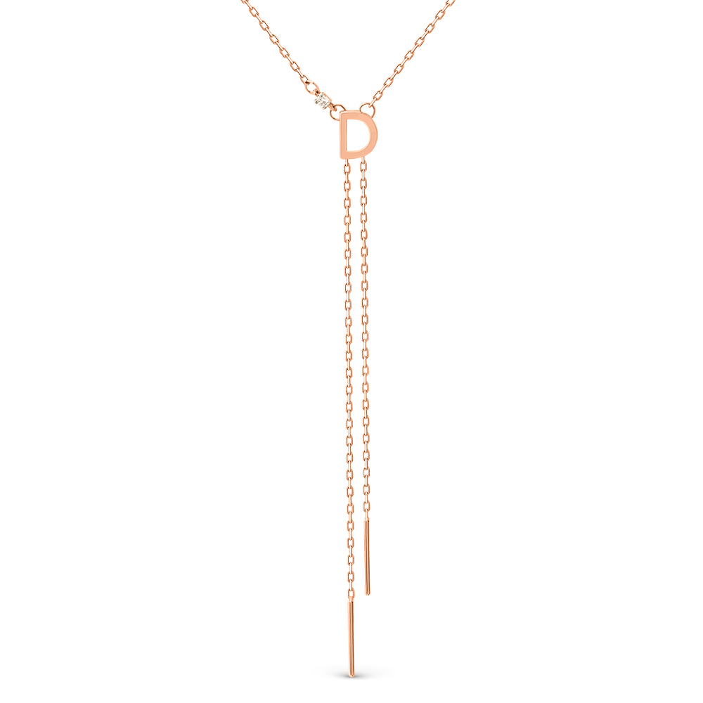 Стильное колье из русского красного золота 585 пробы с подвеской в виде буквы D и аккуратным фианитом.