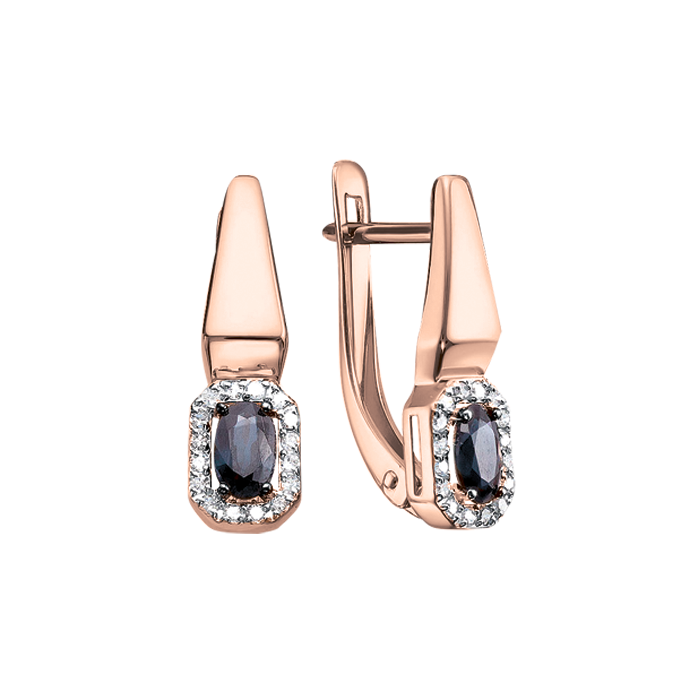 Серьги из красного золота 585 пробы (14K) с глубокими синими сапфирами и сверкающими бриллиантами в элегантной каплевидной оправе с надёжным английским замком.