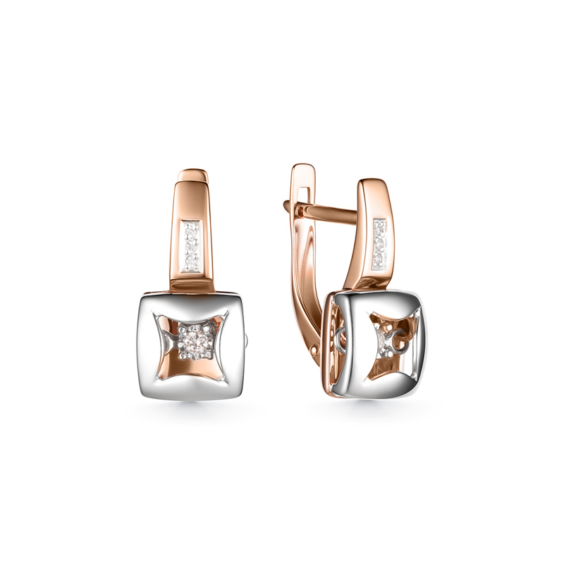 Элегантные серьги из русского красного золота 585 пробы, украшенные искрящимися бриллиантами.