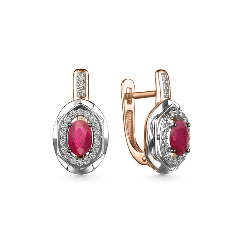 Элегантные серьги из красно-белого золота 585 пробы с рубином и бриллиантами.