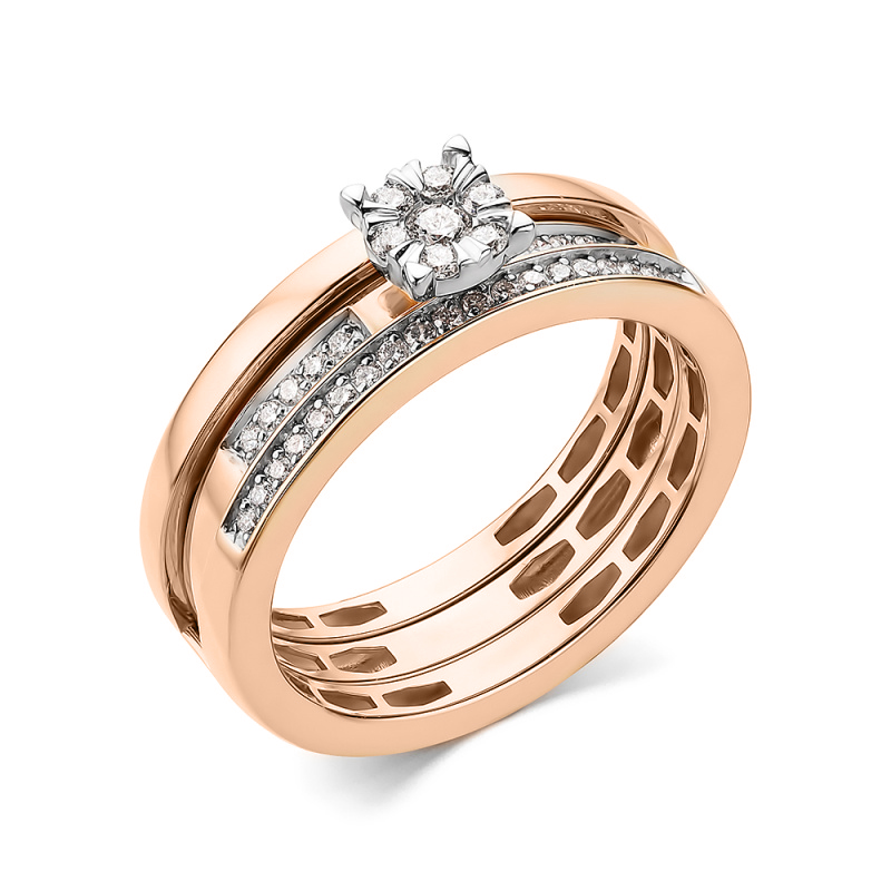Элегантное кольцо-трансформер из русского красного золота 585 пробы, украшенное бриллиантами.