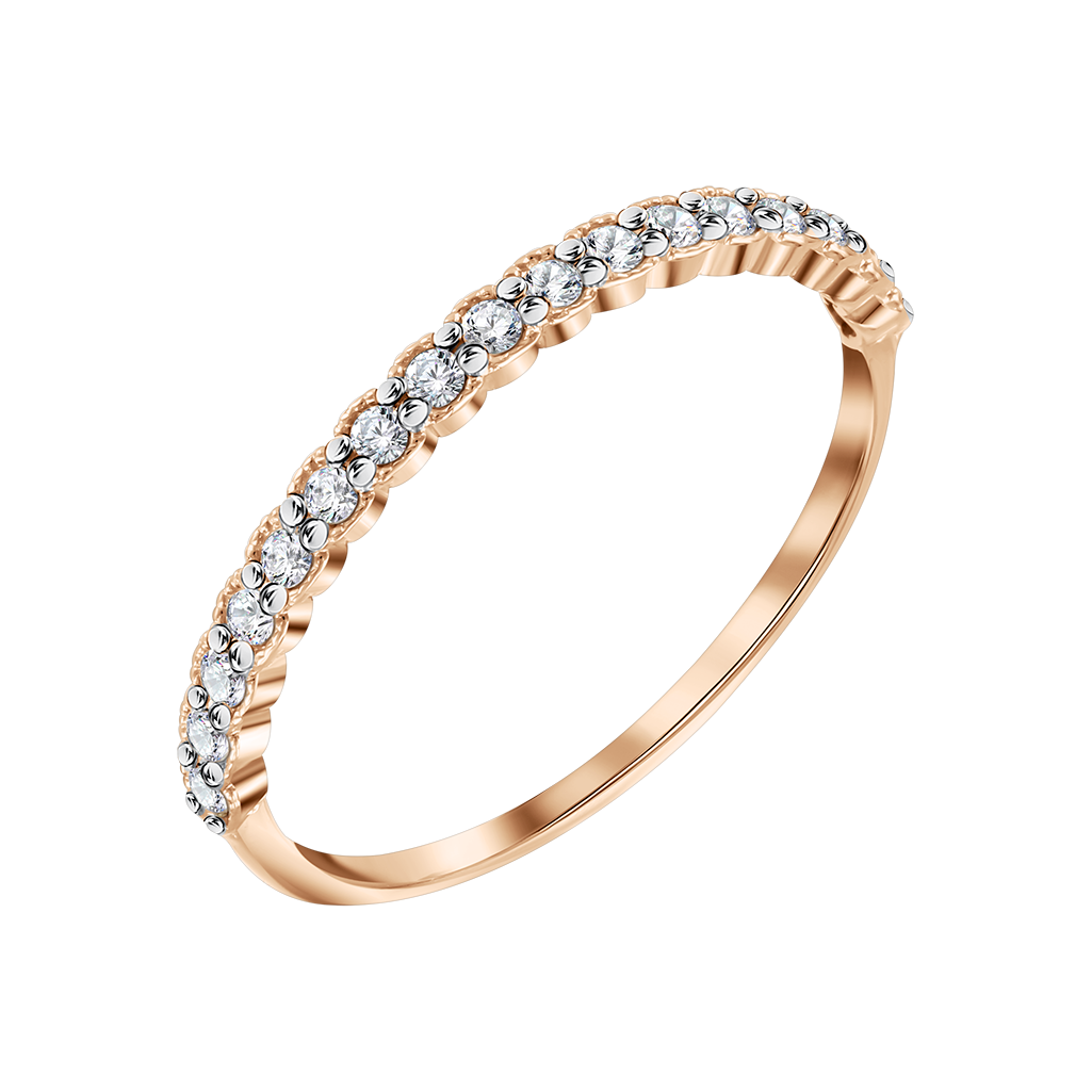 Изысканное кольцо из красного золота 585 пробы украшено изящной дорожкой сияющих бриллиантов, создающей эффект утончённого блеска.