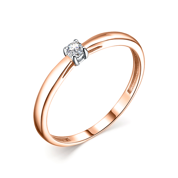 Лаконичное кольцо с одним сияющим бриллиантом в центре.