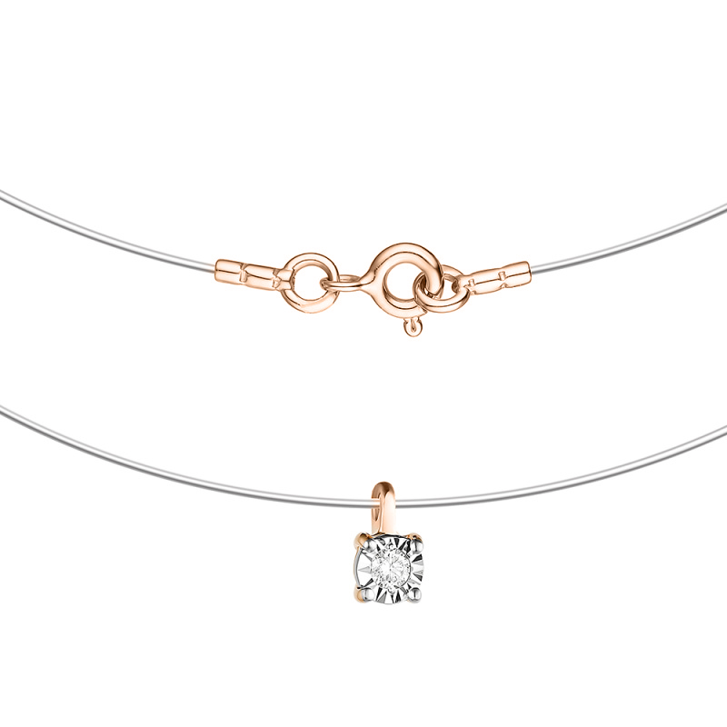 Невидимое ожерелье с подвеской из красного золота и блестящим бриллиантом.