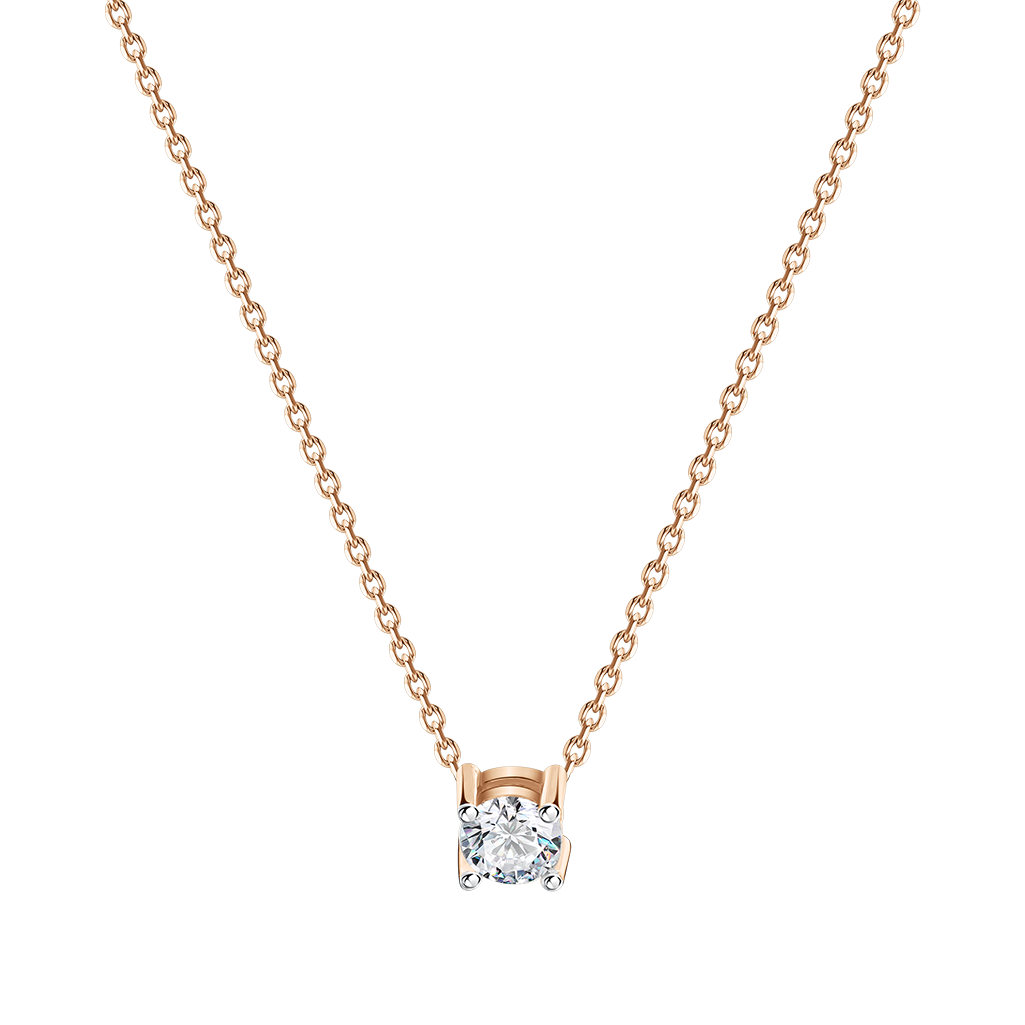 Элегантное колье из красного золота 585 пробы украшено сияющим бриллиантом, который становится утончённым акцентом образа.