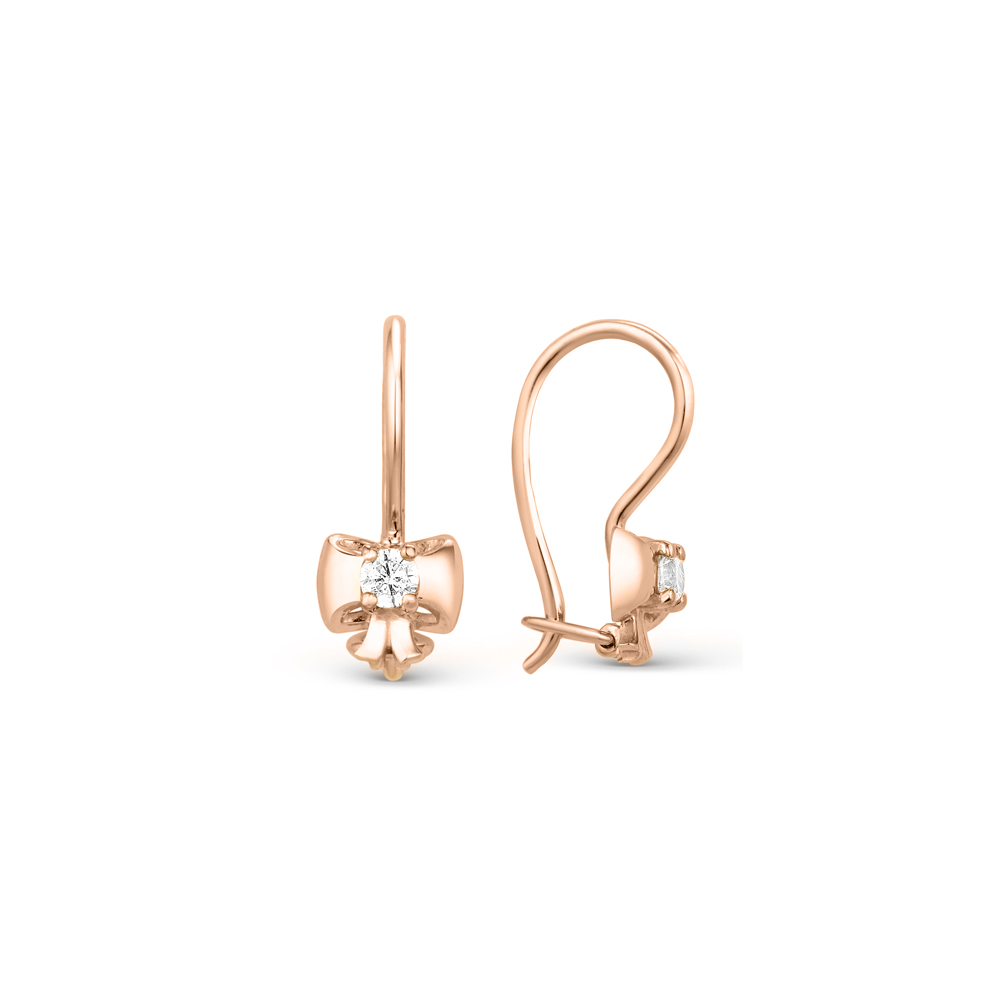 Нежные детские серьги с аккуратным бантом и сияющим фианитом в центре.