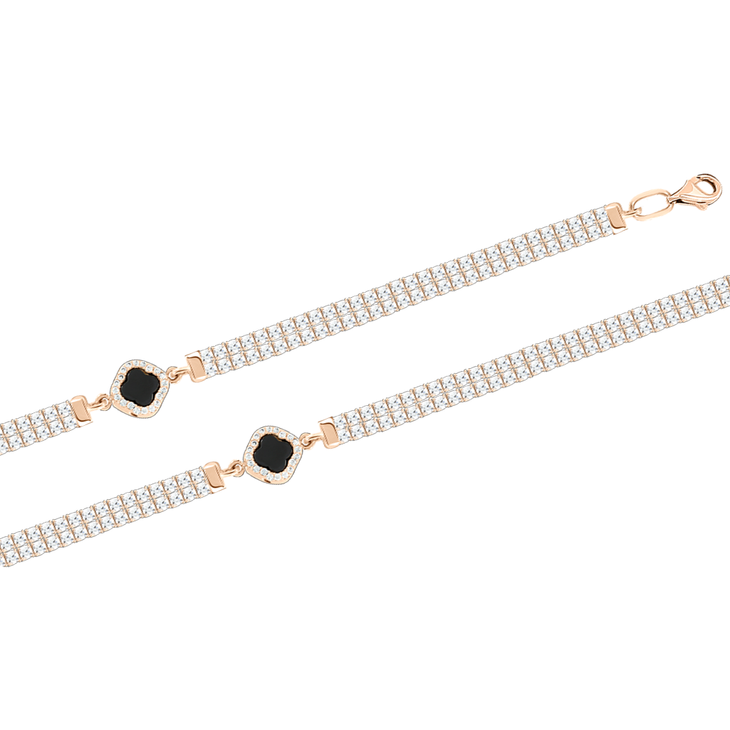Элегантный браслет с ониксом и сияющими фианитами в современном, выразительном дизайне.