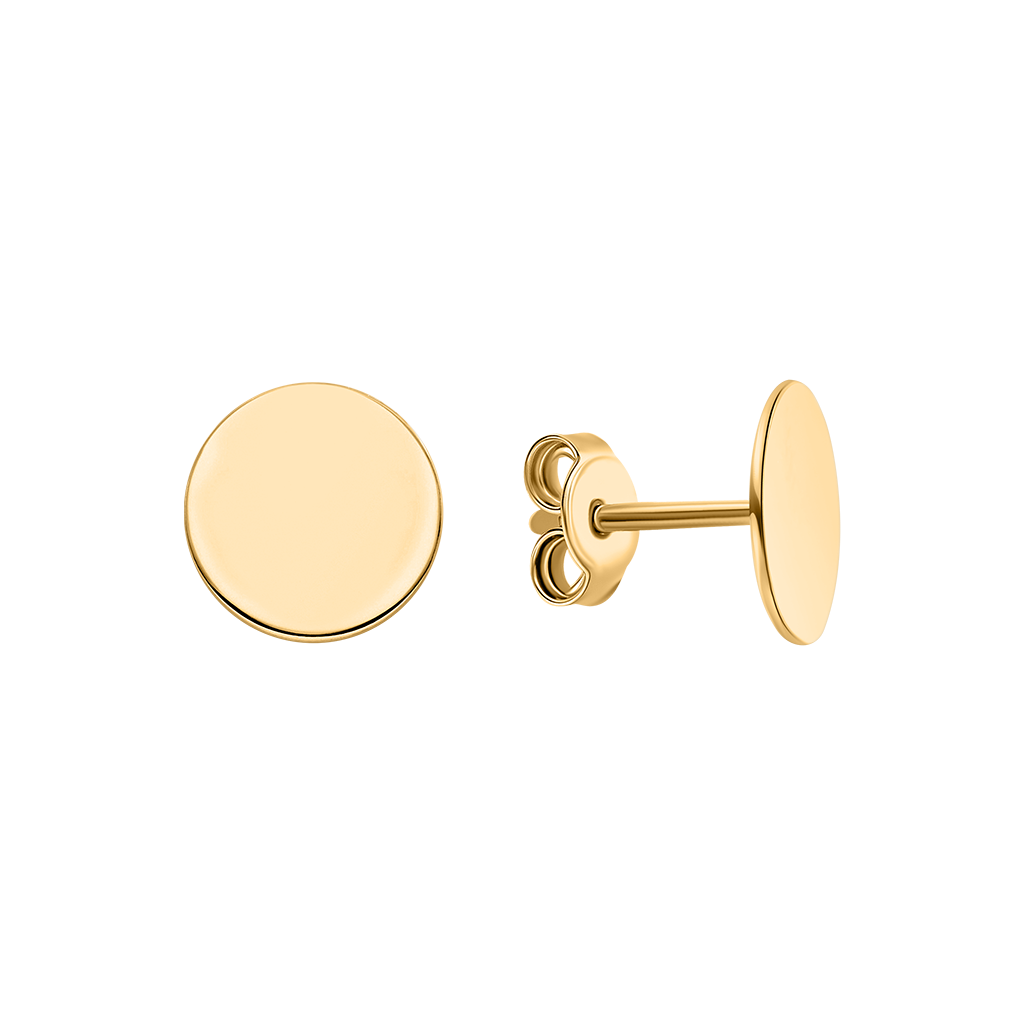 Стильные серьги-пуссеты из жёлтого золота 585 пробы диаметром ≈ 10 мм.
