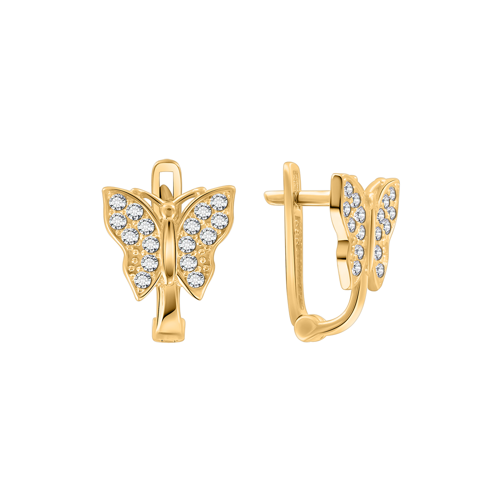 Эти изысканные серьги в форме бабочек сияют нежным блеском фианитов и создают воздушный, романтичный образ.