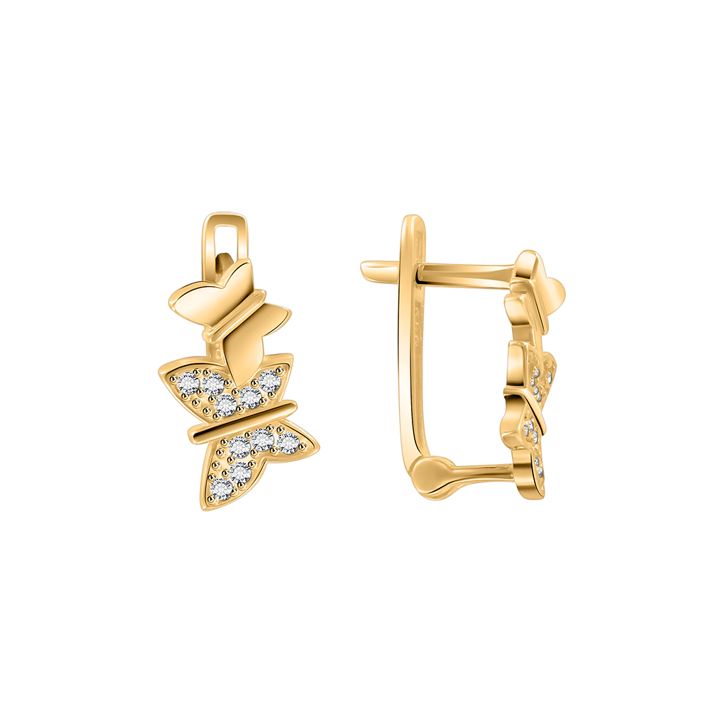 Нежные серьги с двойным мотивом бабочек очаровывают изящностью формы и сиянием фианитов.