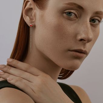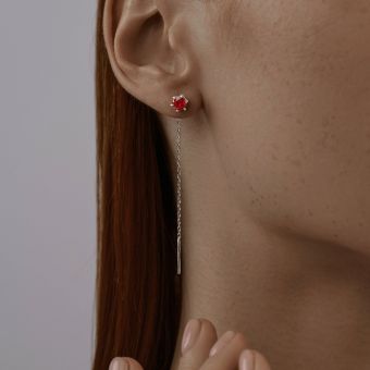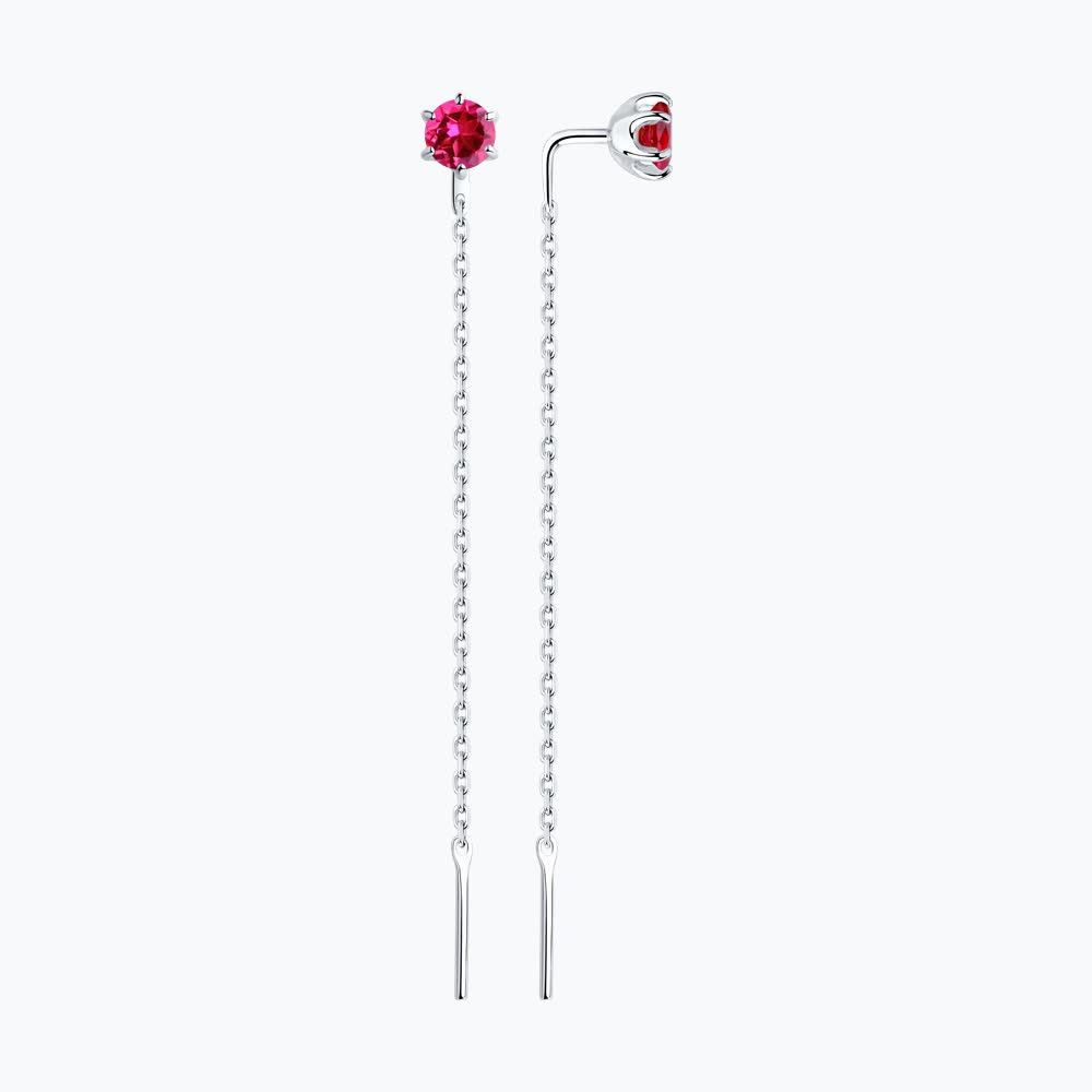 Изящные серьги-протяжки из серебра 925 пробы украшены ярким рубином, который придаёт украшению выразительный цвет и благородный блеск.