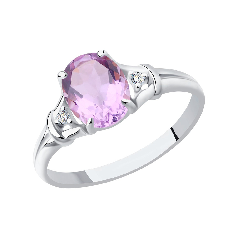 Красивое женское кольцо из серебра 925 пробы, с вставками из аметиста - размером ≈ 9x7 мм и 2 фианитов. Аметист – это символ искренности, преданности и чистосердечия. Украшения с камнем рекомендуется носить в том случае, если вас мучают тревоги и душевные переживания. Энергетика камня дарит душевный покой и внутреннее умиротворение, помогает сохранить психическое здоровье, укрепляет волю. Древние римляне называли его не иначе, как «благословенный камень», приносящий удачу и покой. Красивое и женственное - это кольцо возможно именно то, что вы искали. Только представьте, какой эффектный акцент создаст изделие с яркими камнями! Порадуйте себя и своих близких! К кольцу есть серьги.
