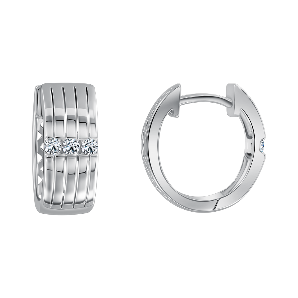 Современные серьги из серебра 925 пробы украшены сверкающими фианитами и выполнены в стильном дизайне.