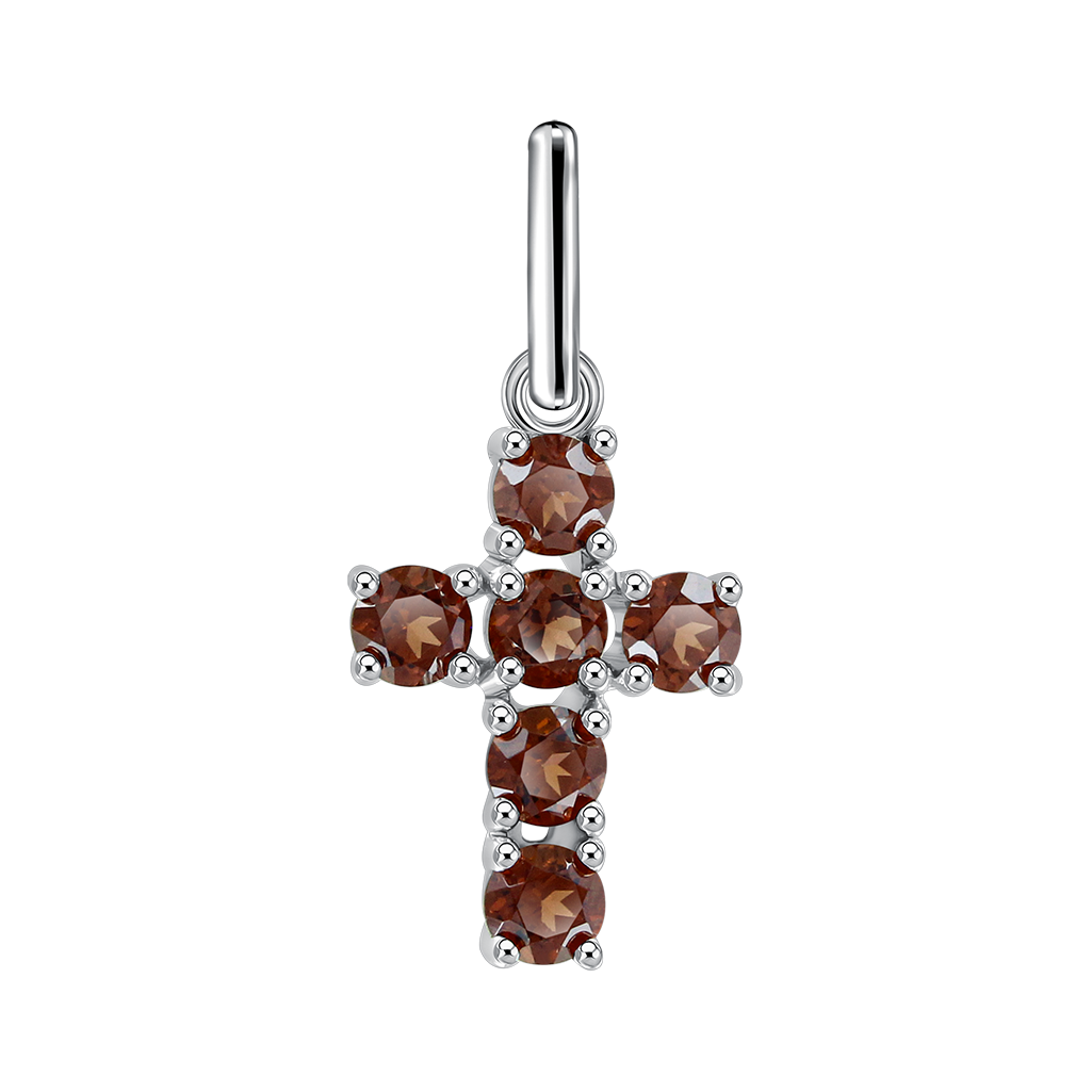 Элегантная подвеска в форме креста из серебра 925 пробы украшена насыщенными гранатами.