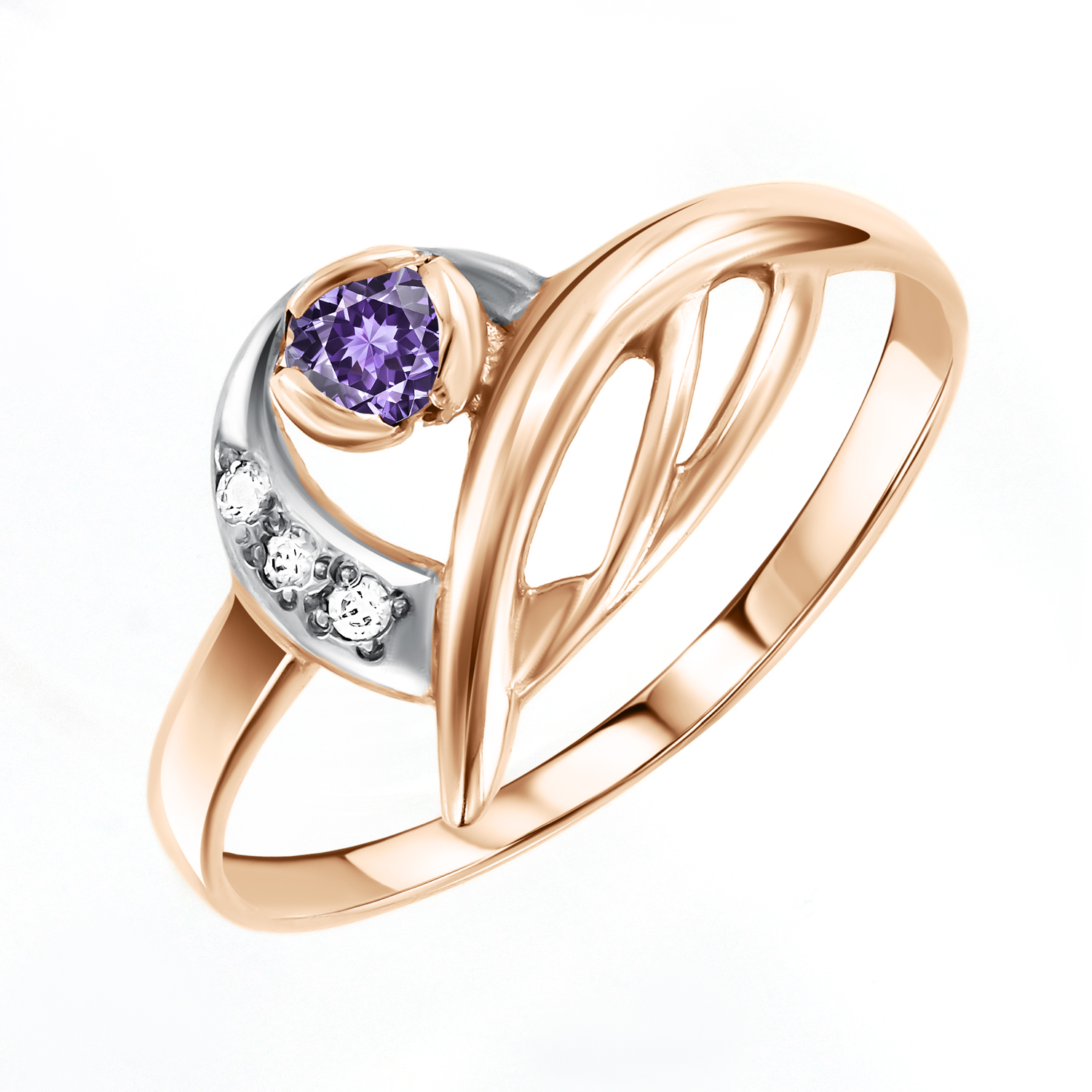 Элегантное кольцо из красного золота 585 с нежным аметистом и сияющими фианитами.