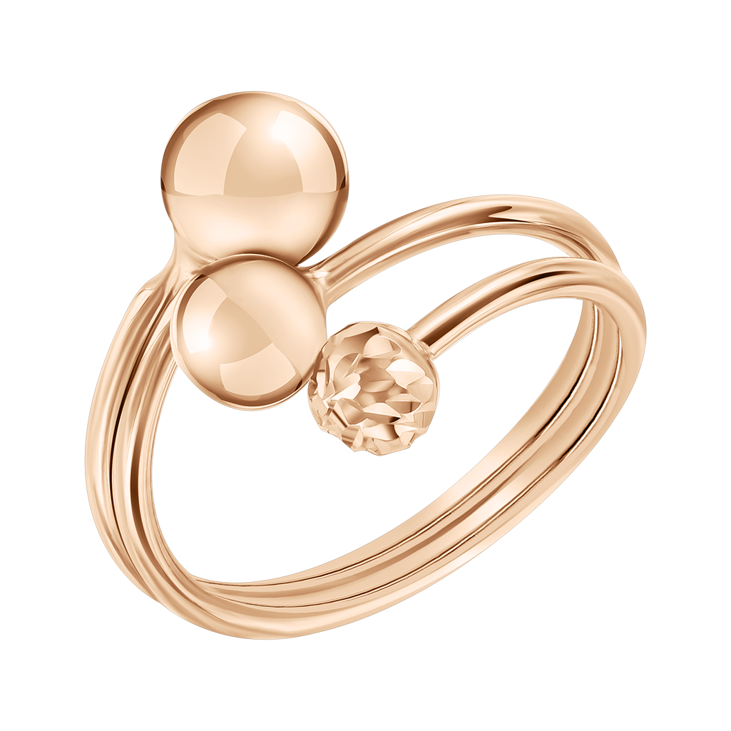 Элегантное кольцо из красного золота с открытым дизайном и выразительными сферическими акцентами.